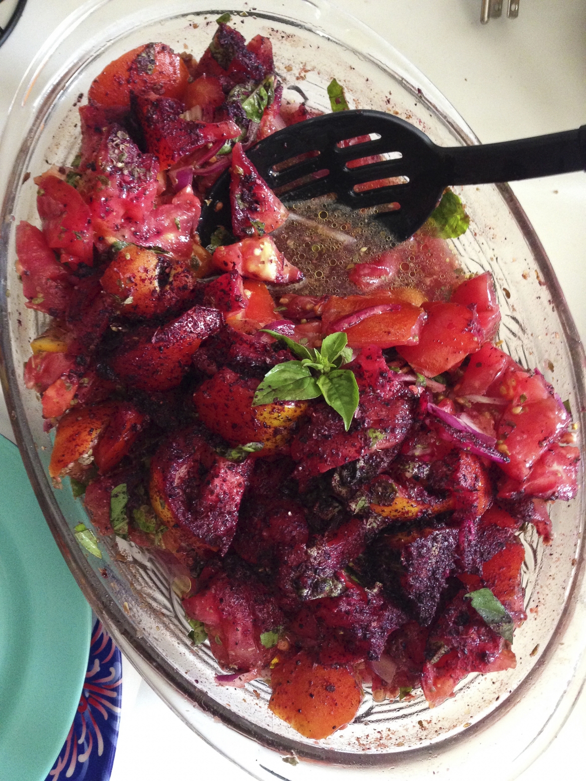 This recipe is thanks to my Aunty Pia who brought this stunning dish over to my house warming party. The moment I saw it I thought, ‘What a vibrant and beautiful colored dish, I must take a photo!!’. It is like eye candy. And after digging in, my taste buds were not disappointed either.